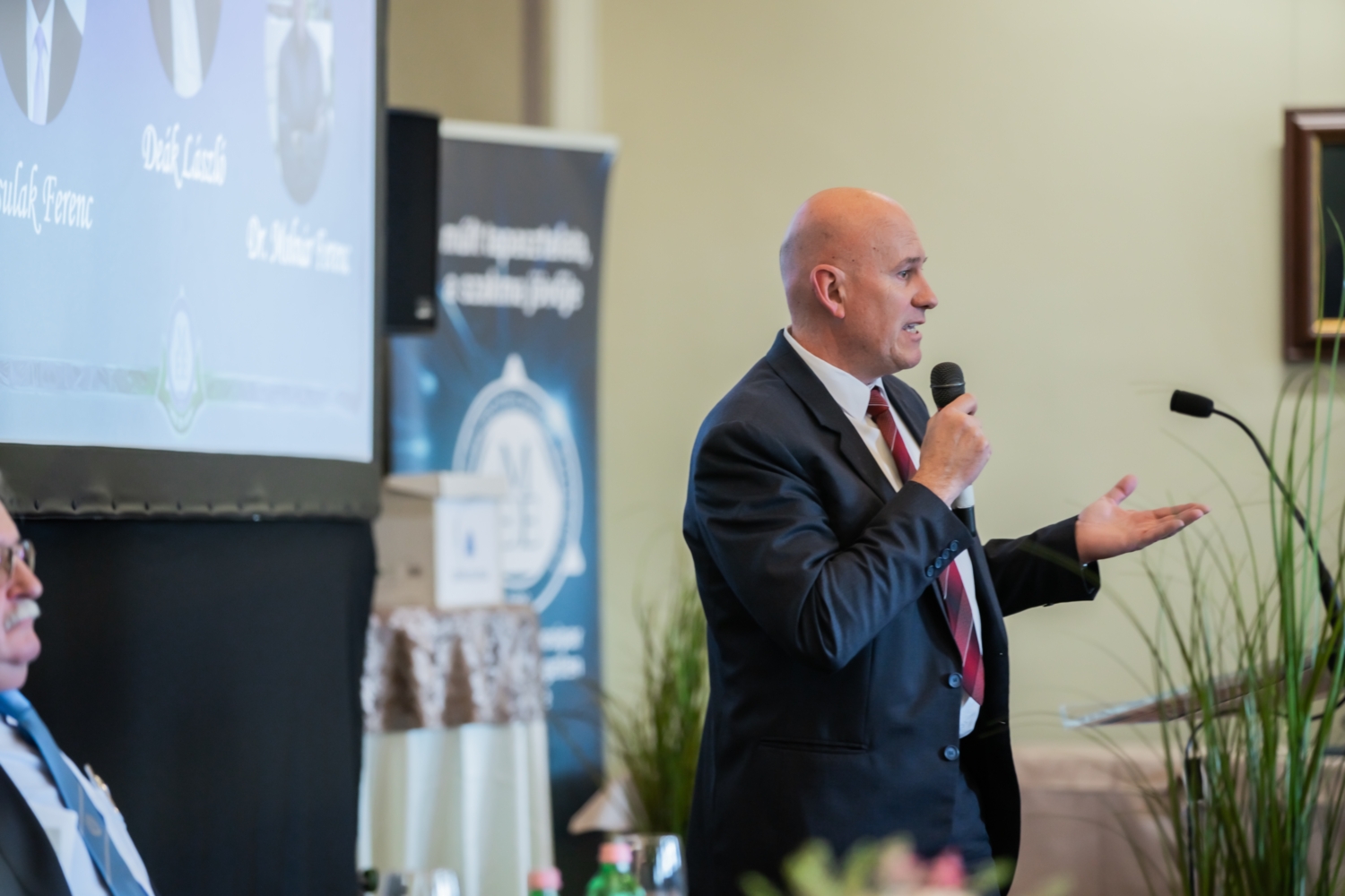 Az új Elnök a székfoglaló beszédében mindenkinek megköszönte a támogatást! Hangsúlyozta a HÍD jelkép összekötő szerepének fontosságát a szakma, a társadalom, a gazdaság és a generációk között. Kiemelte, hogy csak csapatban lehetünk eredményesek, ezért ebben a csapatmunkában mindenkire számít.